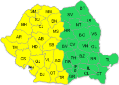 Meteorologii au emis o avertizare cod galben de ploi şi vijelii pentru jumătatea de vest a ţării, valabilă de sâmbătă după-amiază până duminică dimineaţă, în judeţele atenţionate putând să se producă ploi torenţiale, descărcari electrice, vijelii şi, izolat, căderi de grindină. Printre judeţele avertizate cu cod galben se află şi judeţul Mureş. Astfel, vor fi averse ce vor avea şi caracter torenţial, frecvente descărcări electrice, intensificări ale vântului ce vor lua trecător aspect de vijelie şi, izolat, căderi de grindină. Cantităţile de apă vor depăşi local 25 l/mp şi izolat 60 l/mp.